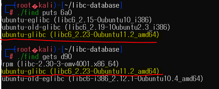 사용된 libc의 종류를 알게되었으니, 해당 버전에서의 gets_offset과 system_offset을 알 수 있습니다.