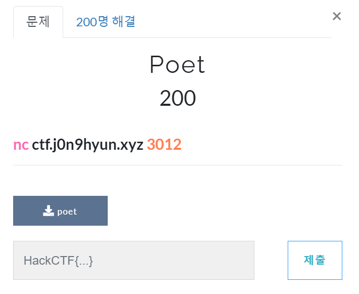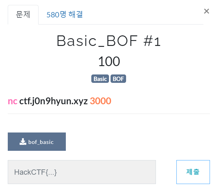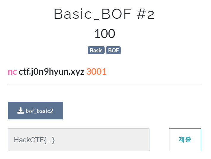 오늘 풀어볼 문제는 HackCTF에 있는 포너블 분야의 문제로