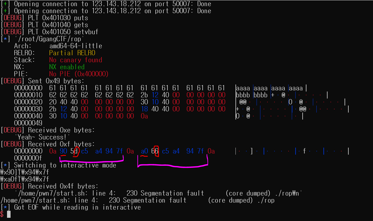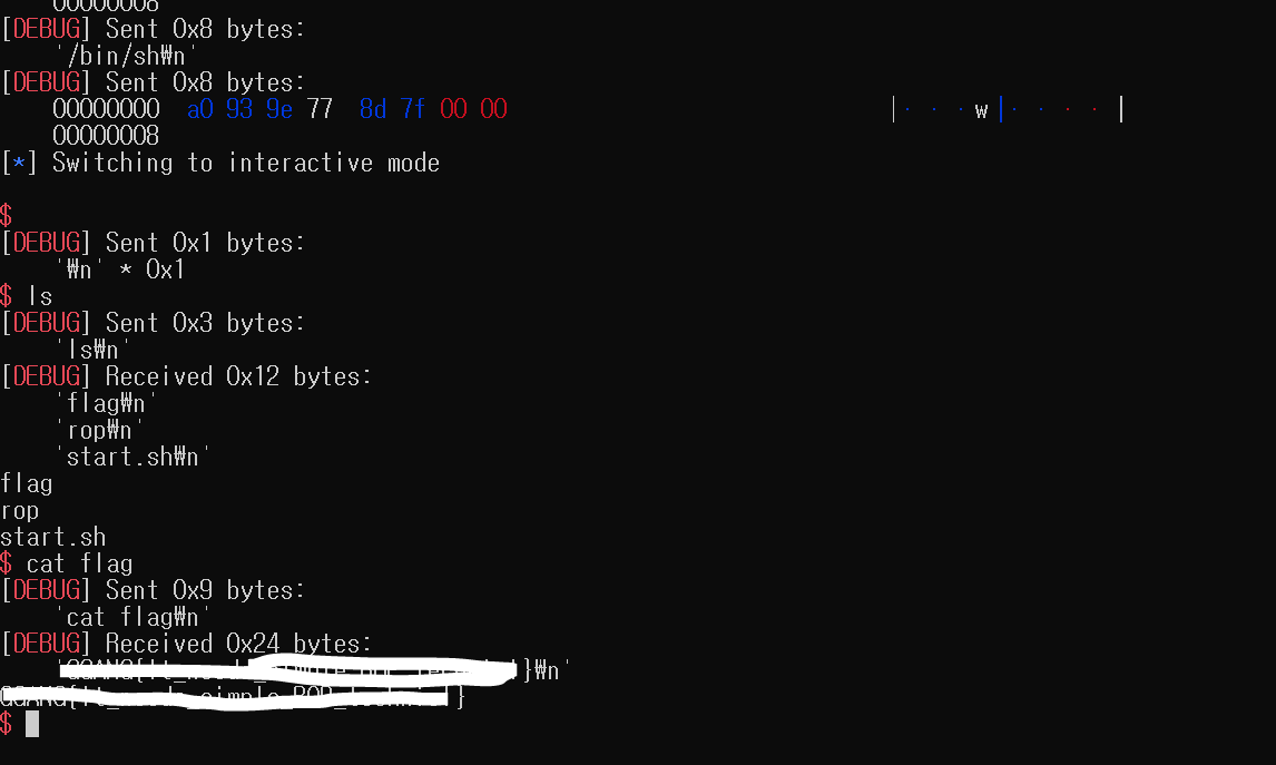 더불어, 페이로드를 작성하고 context.log_level = "debug"를 통해서
